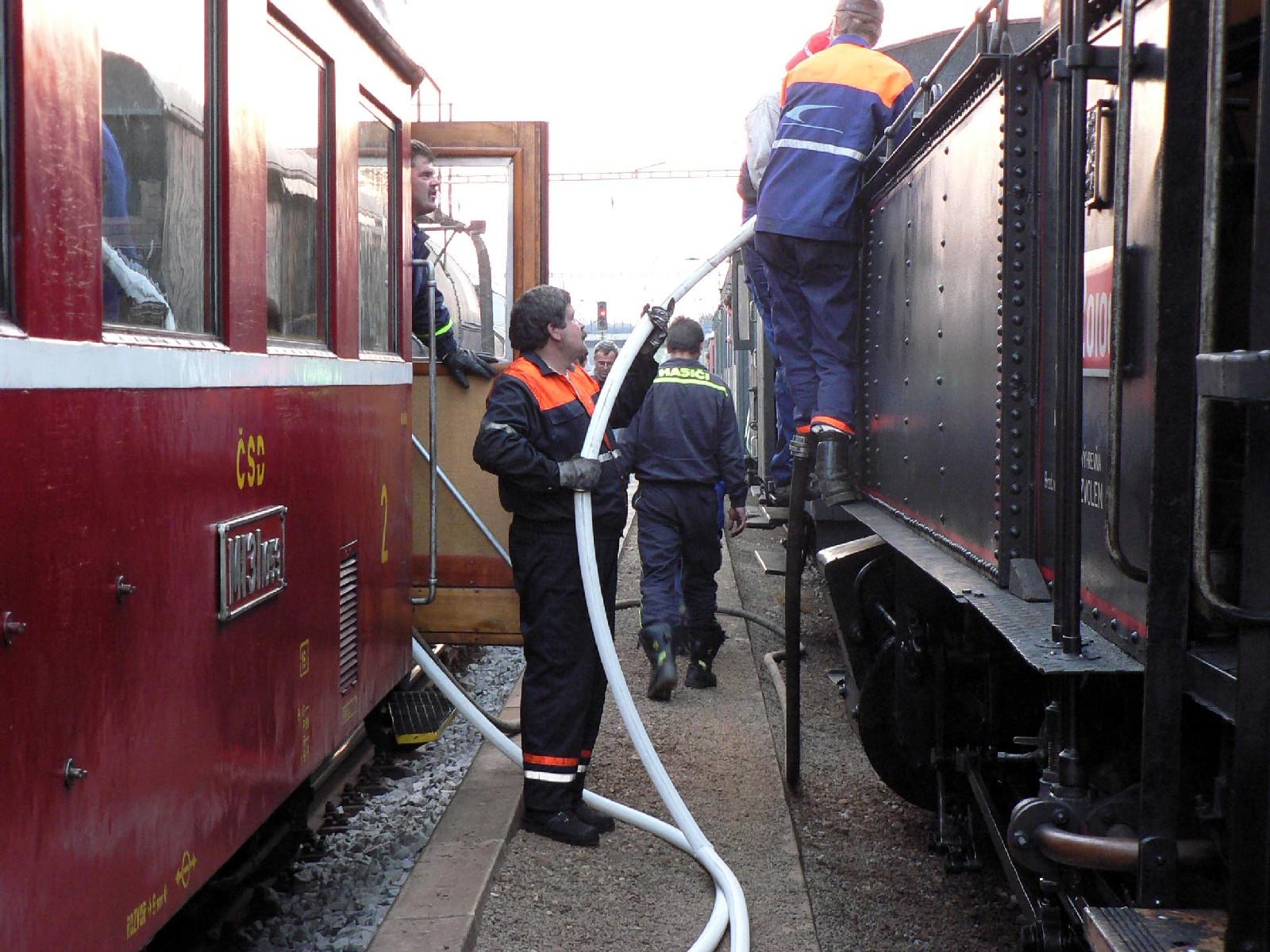 Po príchode do rušňového depa, odstavení historických vagónikov sa "Malý Býček" vrátil na svoje miesto do rotundy depa, kde mu jeho posádka doplnila pomaly do kotla vodu a upravila oheň na rošte. Oheň v peci pomaly vyhasol, voda v kotli ochladla a parný rušeň takto v tichosti bude čakať, kým opäť iskra zápalky nezažne ohník v jeho peci, ktorý zohreje jeho staré údy, vyrobí potrebnú paru a mašinka bude opäť jazdiť a rozdávať radosť všetkým, ktorí ju majú radi. |
