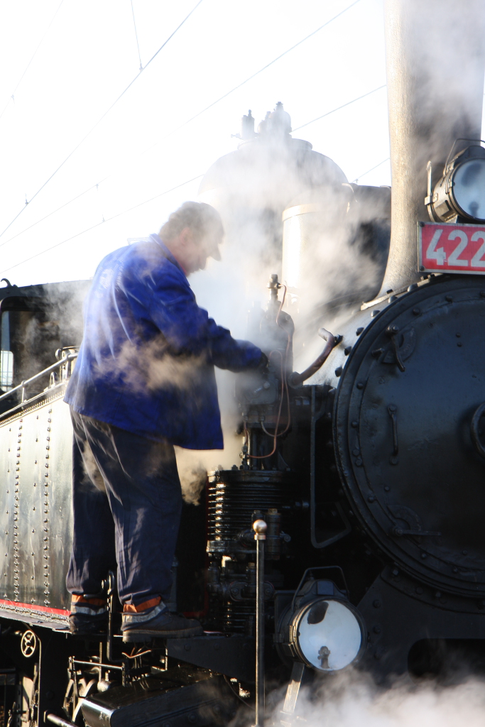 V čase nášho príchodu panoval v košickom depe neobvyklý ruch. Mašinky putujúce na výstavu sa začali postupne schádzať na točni a pomaly zapĺňať lúče rotundy. Pomocou rušňa radu 721 boli jednotlivé vozne vyposunované na svoje miesta. "Štvorka" bola ostavená v rotunde, CDlm sa prestavilo na koľaj kde boli podávené bryndzové halušky a "Býček" zaujal miesto na svojej súprave zloženej z historických vozňov Ci a služobného vozňa Dd. Večer už bolo skoro všetko pripravené a studené stroje začali v noci pomaly ožívať. Neskoro večer sa v peci "Malého Býčka" objavili prvé plamienky ohňa a ručička manometra začala pomaly, ale isto stúpať.