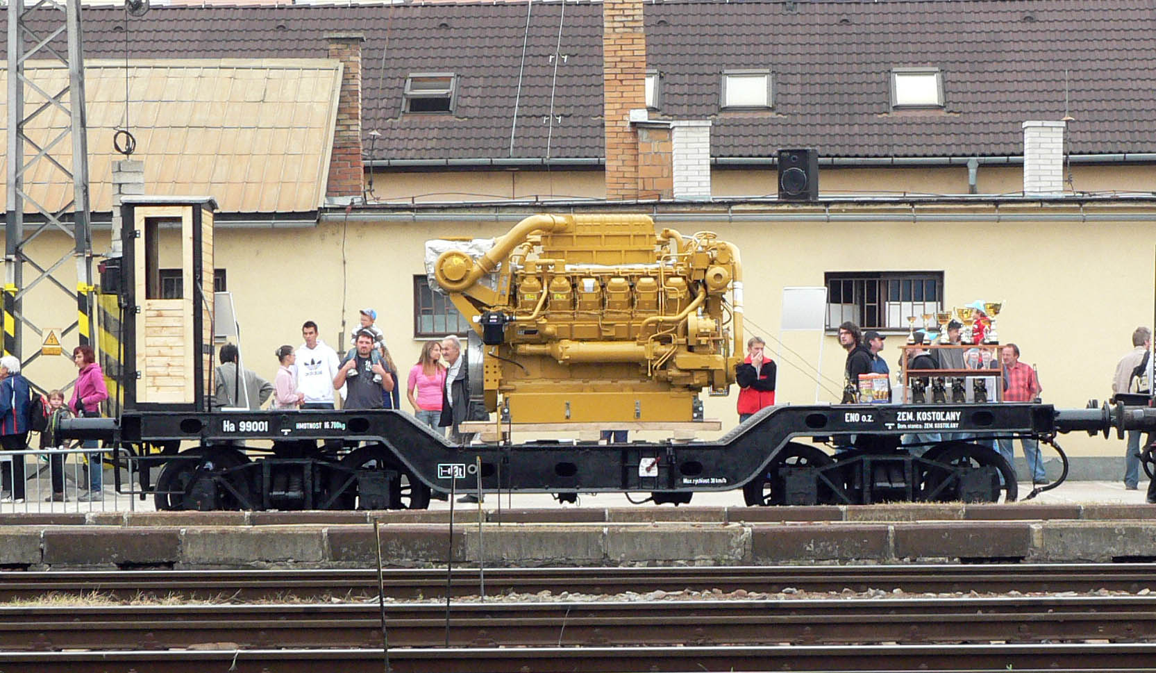 Program podujatia však súbežne prebiehal aj na nákladnej stanici, kde bol vystavený pápežský vlak TOTUS TUUS z Poľska. Atmosféru na nákladnej stanici od rána oživovalo vystúpenie detskej dychovej skupiny NOVOBANČANKA. V tom čase sa už do železničnej stanice z rušňového depa postupne na premiérové súťažné preteky motorových vozňov presunuli „stotridsaťjednotky“.