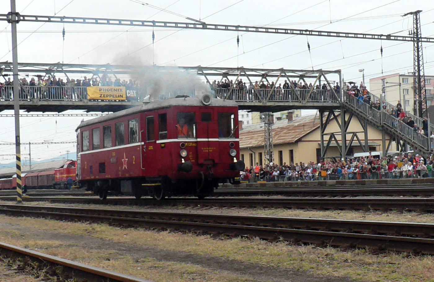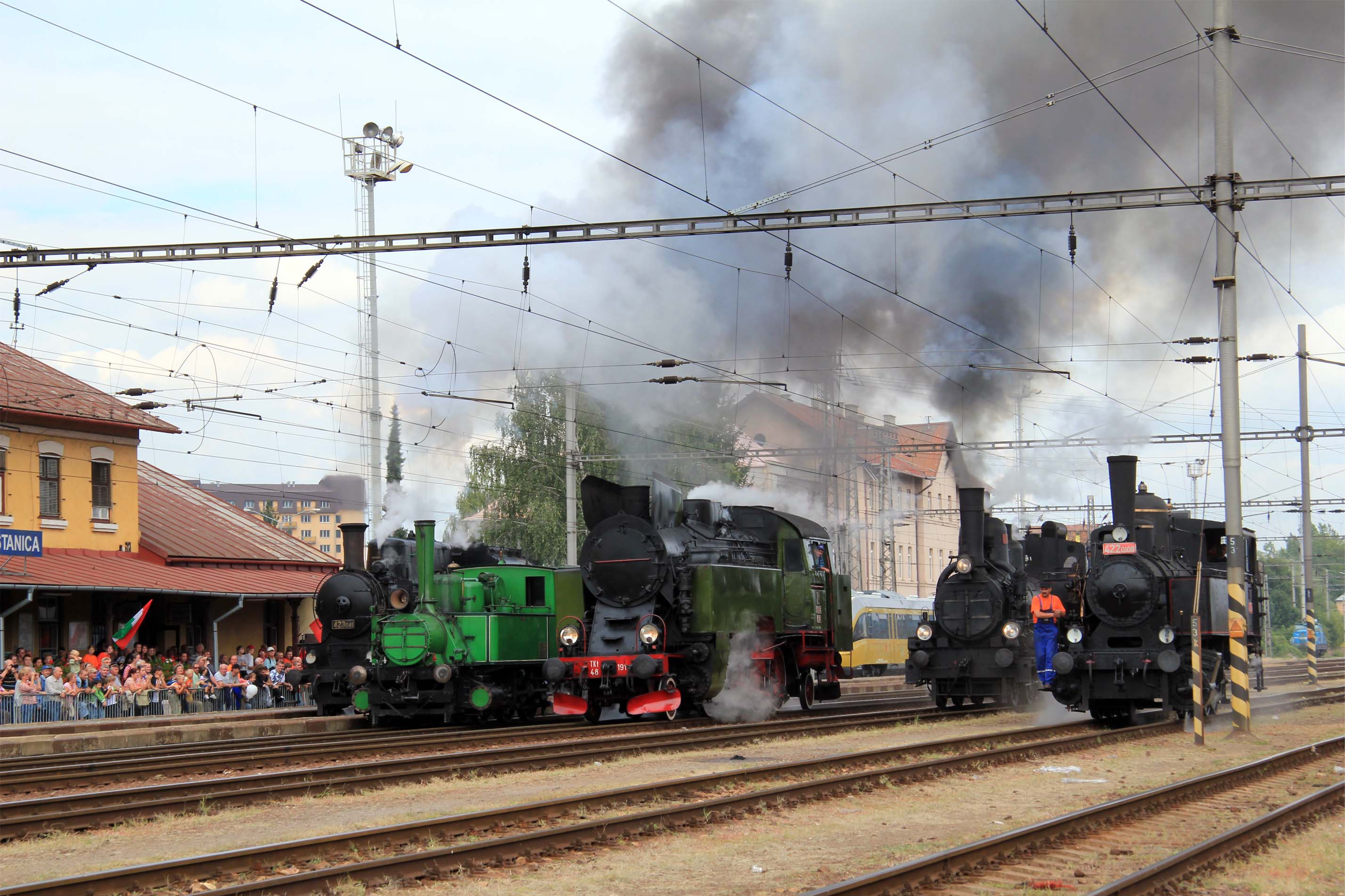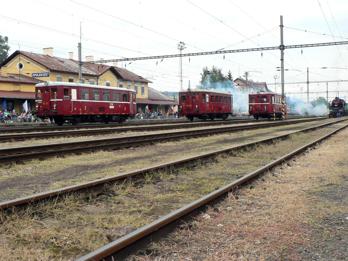 Historické motorové vozne v železničnej stanici postupne nahradili parné mašinky čakajúce na začiatok pretekov o 13:30 a stanica sa začala zahaľovať do obláčikov dymu.