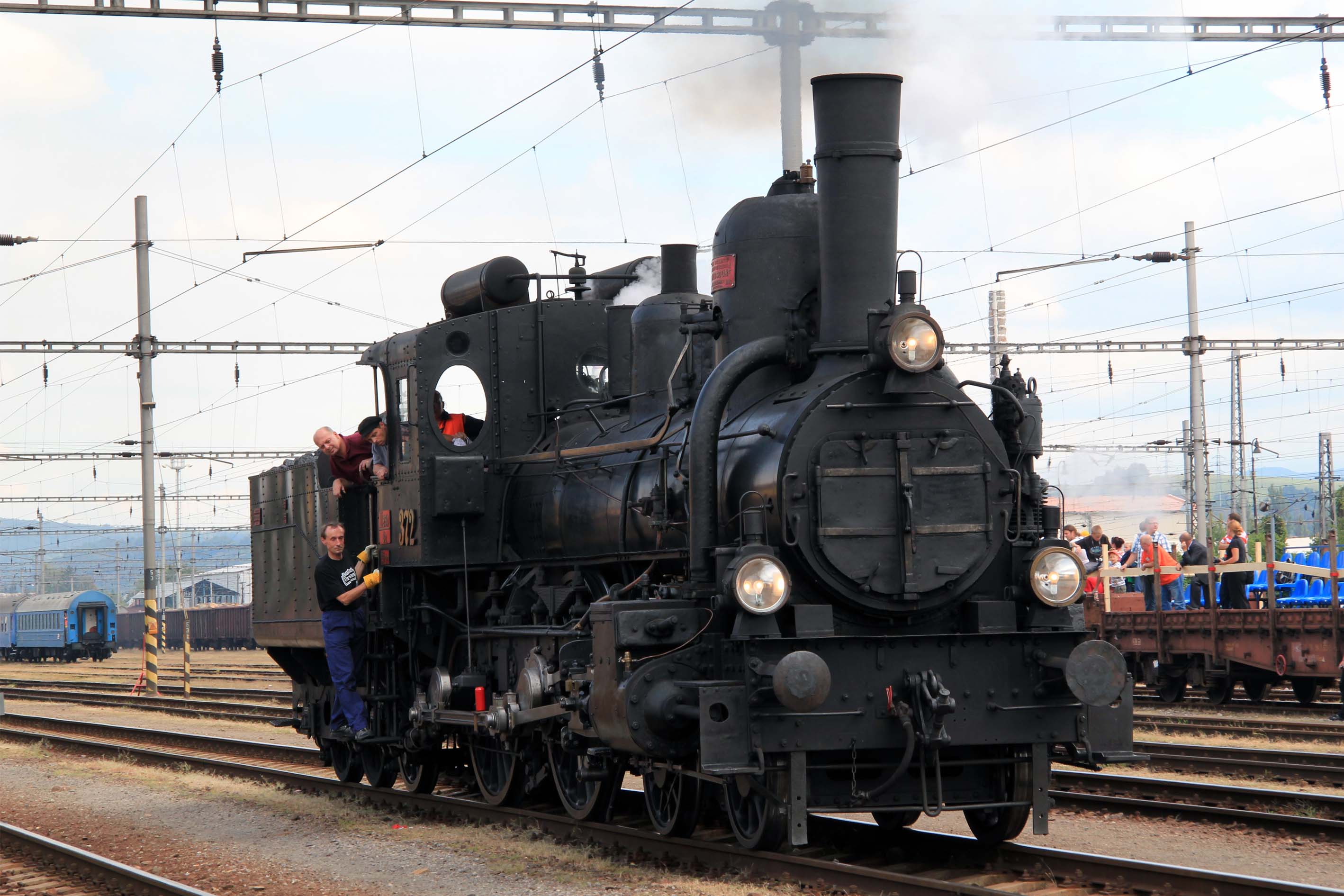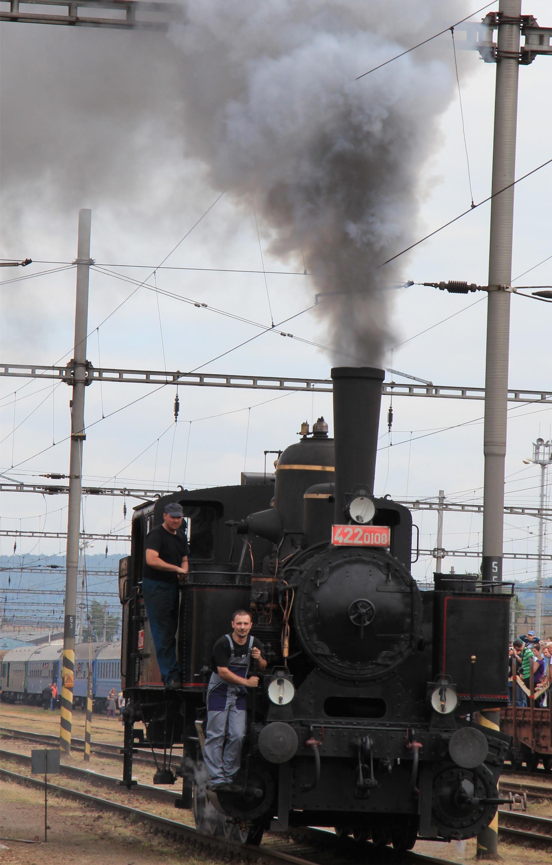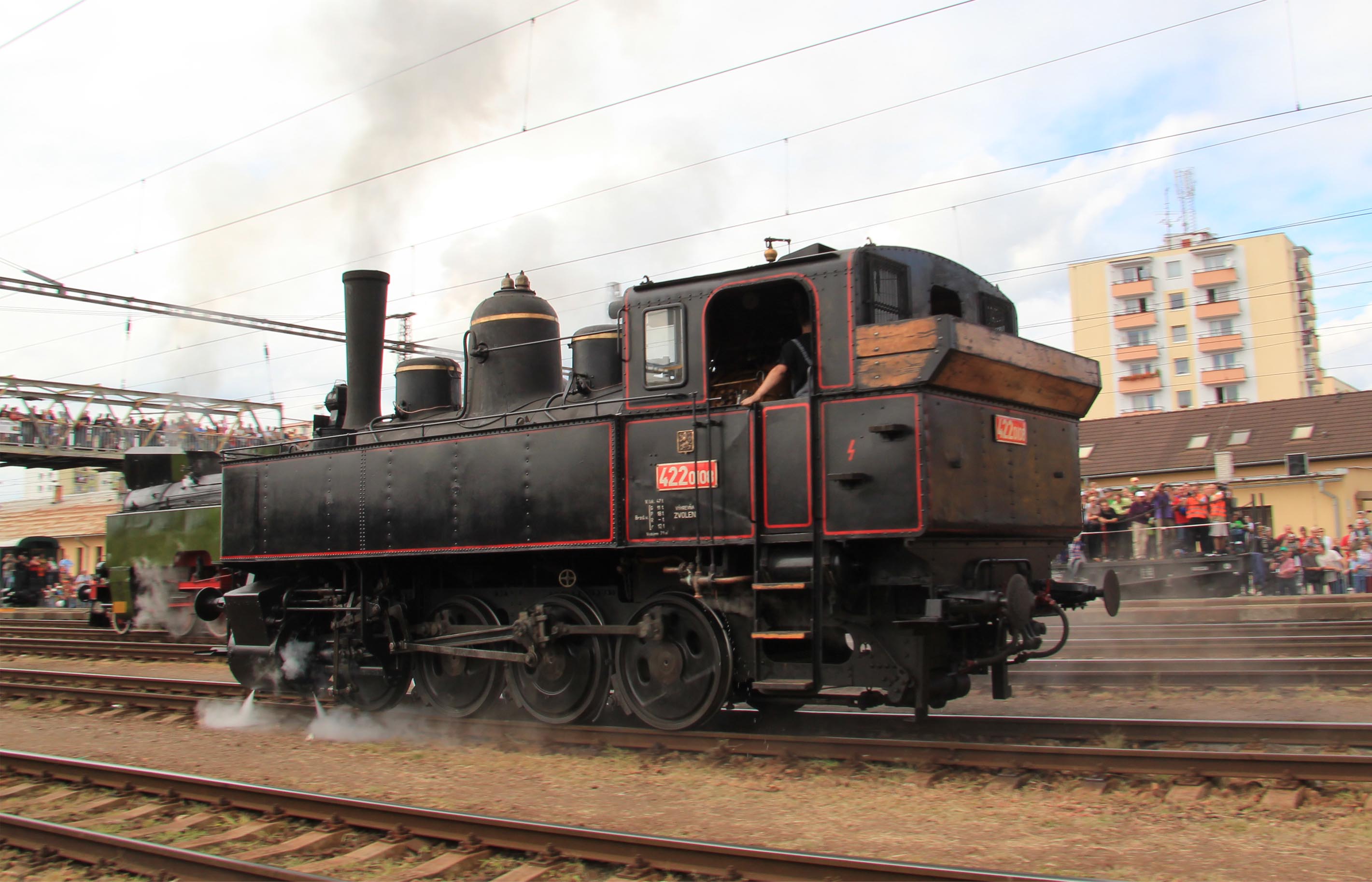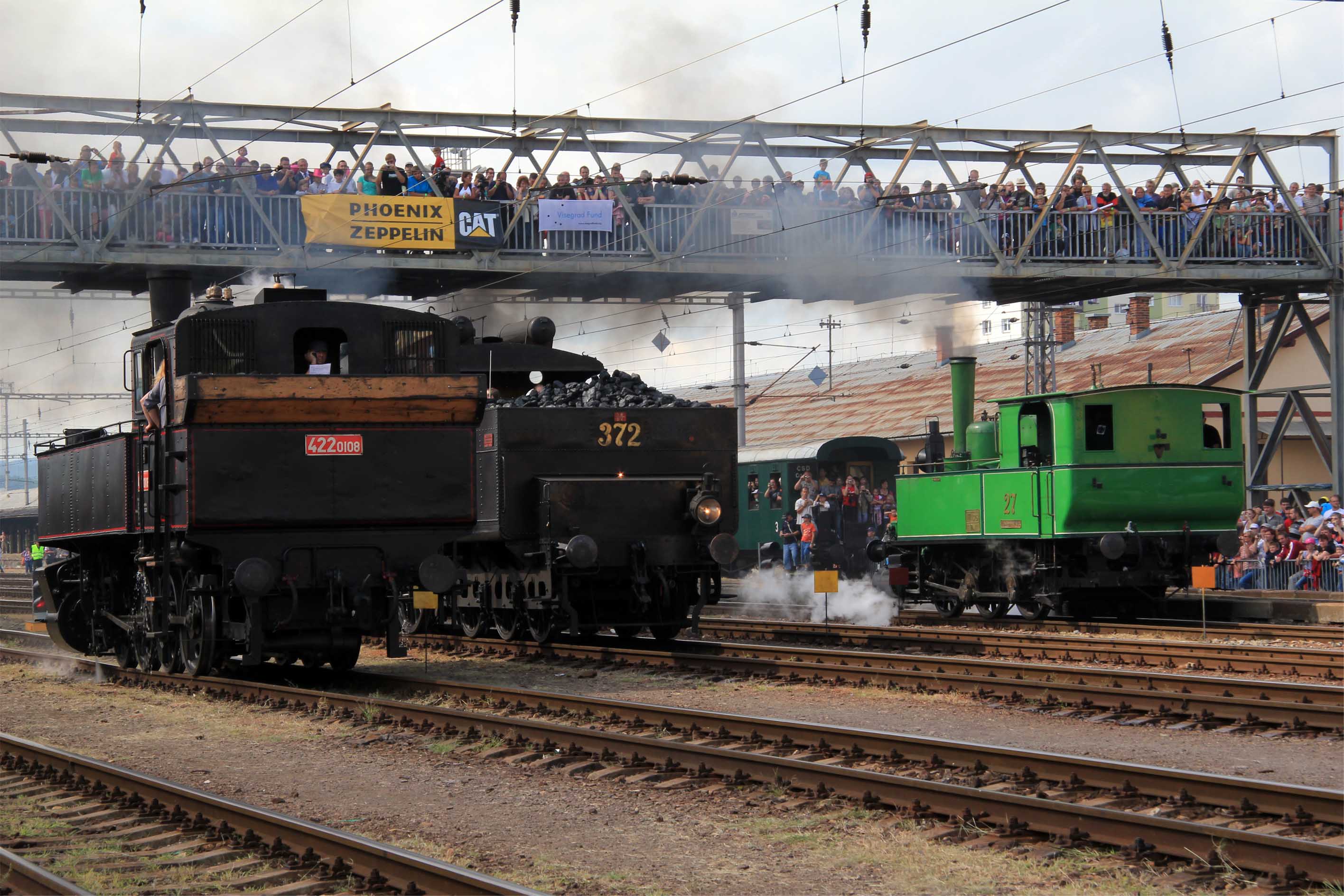 Historické motorové vozne v železničnej stanici postupne nahradili parné mašinky čakajúce na začiatok pretekov o 13:30 a stanica sa začala zahaľovať do obláčikov dymu.