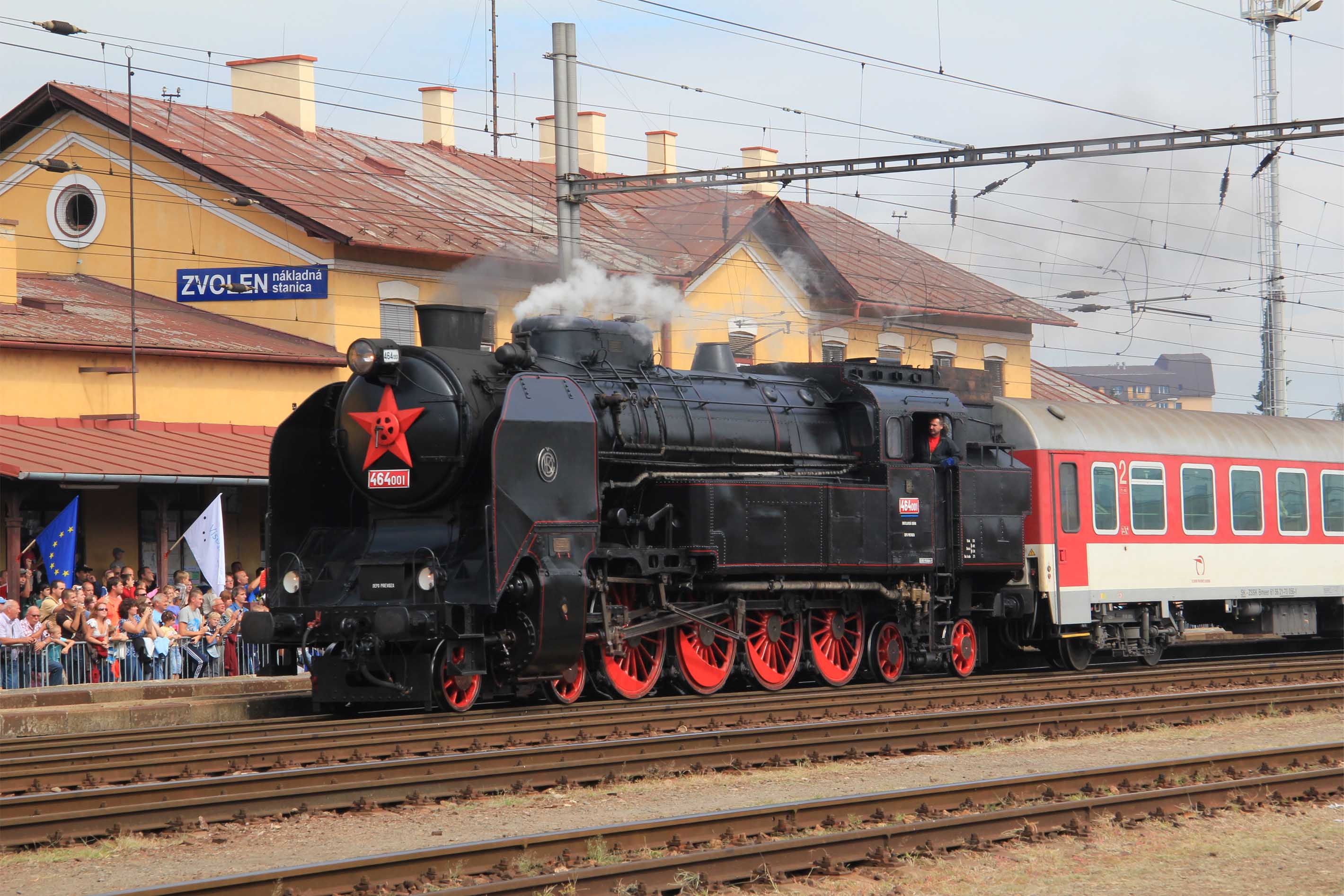 Okolo 9:30 zvolenskou nákladnou stanicou zaznelo dunenie naftových motorov v podobe 749.258, T 478.1010 a T 466.0254, ktoré doviezli na podujatie mimoriadny vlak z Vrútok.