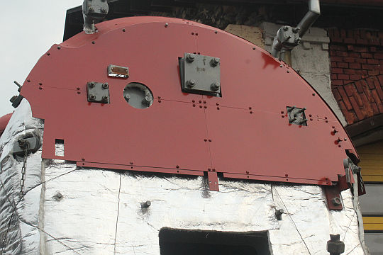 Od septembra 2012 sme začali s výrobou budúcej konštrukcie, ktorá bude vymedzovať vôľu medzi kotlom a oplechovaním. V novom roku 2013 sa začalo s izolovaním valcového kotla a s jeho postupným oplechovávaním. Jednalo sa o celkovú novovýrobu plechovania, kde na parné dómy boli použité repasované plechy. Medzi tým sme rozobrali torzo pôvodných dymničných dverí, tieto zamerali a rozkreslili.