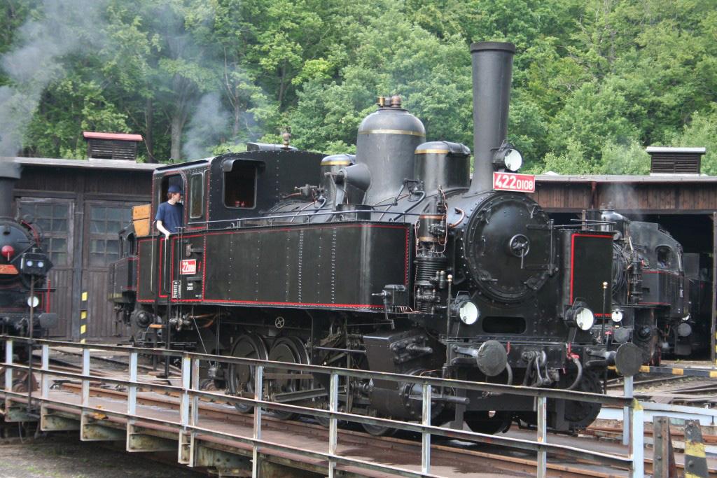 Zvolenský "Malý Býček" sa na ďalekú cestu chystal už dlhšie. Jeho opatrovníci mu vymyli kotol, opravili zaistenie klapiek popolníka, zaseknutý rýchlomer a ešte niekoľko drobných kozmetických úprav, ktoré sa prevádzkou prejavili. Studený, so zhodenými ojnicami a prázdnymi vodnými vaňami vyrazil na takmer 1400 km dlhú cestu vo štvrtok 22.6 ráno o 6:00. Historický konvoj bol ťahaný "Cénulou" T 678.0012, ktorá ho v poriadku doviezla do Čadce. Od Čadce konvoj ťahal elektrický rušeň ČD. Podvečer celá súprava dorazila do Ostravy, kde k 422.0108 pribudol jeho väčší brat 423.041. Cesta pokračovala v noci územím celých Čiech smerom k Prahe. V piatkové predpoludnie sa ku konvoju pripojili ešte "Býčky" 423.009 a pred nedávnom opravená 423.0145. Do Prahy "Býčky" dorazili v piatok podvečer. Elektrický rušeň a T 678.0012 zostali v Prahe a parné mašinky ťahané dvojicou rušňov radu 742 pokračovali ponad Vltavu a cez pražský "Semmering" smerom na Kladno až do Lužnej u Rakovníka. Po rozposunovaní súpravy, uložení všetkých mašiniek na svoje miesta zavládla nad múzeom pokojná noc. Len sykot rozkurujúcich sa mašiniek rušil toto ticho hustých lesov, kde sa múzeum nachádza. 422.0108 dostala ojnice ešte v železničnej stanici, ako čakala na rozposunovanie. Rovnako tu plamienok zápalky podpálil olejovú handru a oheň v peci sa začal postupne rozhárať. Treba povedať, že 422.0108 pri posune pri zakladaní ojníc pomohol brat 423.0145, ktorý ju dotiahol aj k vodnému žeriavu na naplnenie vodných vaní.