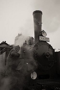 ... snáď už jej nebude nič brániť, aby sa mohla stretnúť aj zo širokou verejnosťou na mimoriadnych vlakoch a výstavách. Pre obyvateľov stredného Slovenska to bude prvý krát na tradičnom mimoriadnom parnom vlaku ktorý pôjde zo Zvolena do Hronca a späť, dňa 1. mája 2011, pri príležitosti otvárania sezóny na ČHŽ.  v retro štýle pózuje časť členov KHT, pri oživenom Malom Býčkovi 422.0108 a v spoločnosti štokra 556.039 čakajúceho na opravu