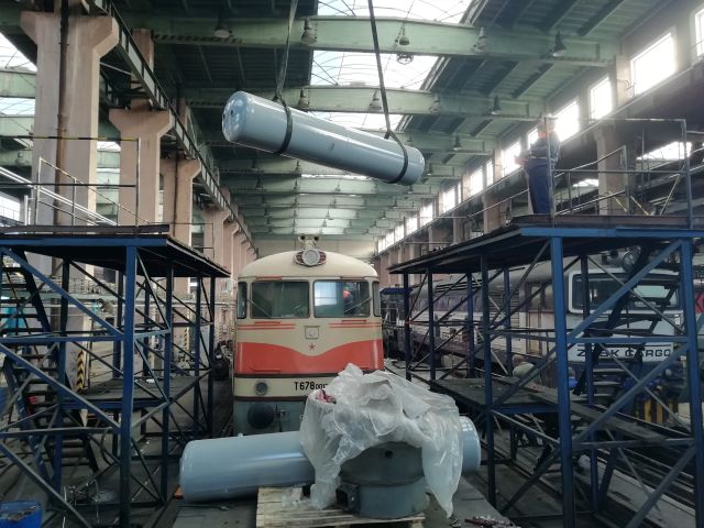 hlavný vzduchojem "nadlietava" 18.11.2018 nad rušeň T 678.012 počas výmeny vzduchojemov v dielni SÚaO RD Zvolen patriacej ZSSK Cargo a.s