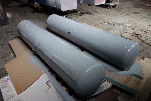 Začiatkom októbra sme vzduchojemy previezli do Zvolena, kde boli opatrené vrchným náterom.