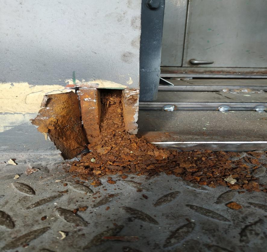 Popri tom bola vytrhaná prehnitá podlaha, odstránené ovlhnuté smrekolitové výplne na stanovišti rušňovodiča.
