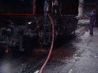 Za pomoci kocúra BN 60 bol Býček vytiahnutý na kanál, kde mu bol zhodený popol a postupne demontavané všetky výmyvky. Následne bol prestavený do haly, kde sa vykonávalo samotné vymývanie. Pri tejto príležitosti boli prehliadnuté sitá vo vaniach, na ktorých bolo zistené poškodenie vplyvom koróznej činnosti vody a mašinka bola kompletne celá umytá. Po vymytí boli vyrobené nové tesnenia výmyviek a kotol sa postupne uzatvoril.