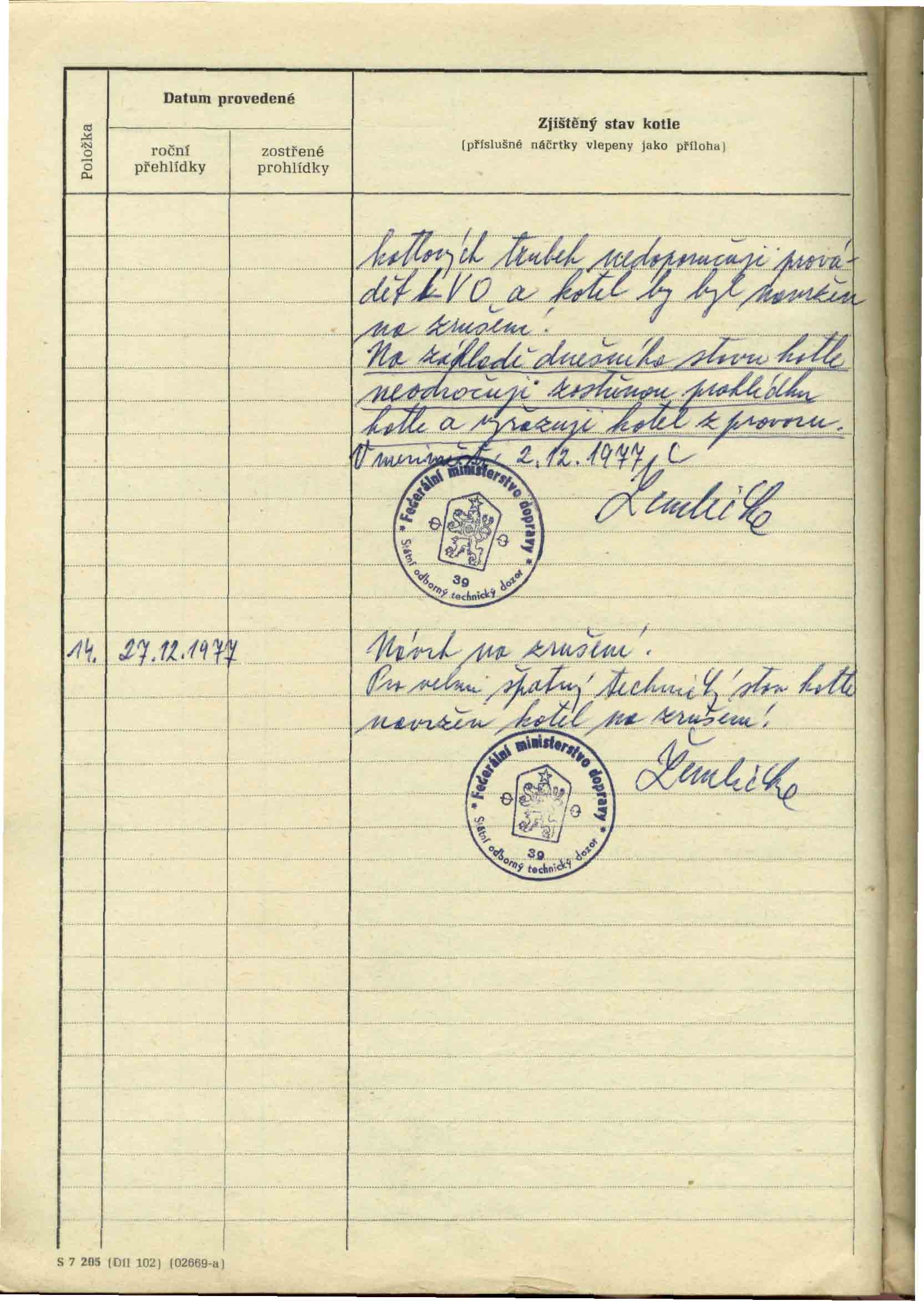 - Chýbajúca zákonitá armatúra kotla – poistné ventily, napájače, telesá vodoznakov, tlakomery, paropripúšťacie ventily a kohúty, odkalovač, vypúšťací kohút skriňového kotla
